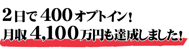 個人のプロモーションでも月収4,100万を達成することが出来ました。